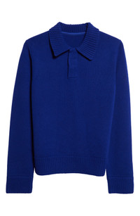 Framed in chunky ribbing at the collar, cuffs and hem, this polo-sweater knit from pale-blue wool features extralong sleeves that slouch and puddle casually at the wrists. Wear it layered or on its own to bring a sense of relaxed elegance to any favorite look. Button half placket Spread collar Long sleeves Ribbed cuffs and hem 100% wool Dry clean Imported Designer Clothing Asian & Pacific Islander Owned/Founded