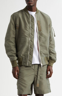 Sacai Nylon Twill Bomber Jacket in Khaki 501 at Nordstrom