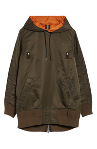Sacai Nylon Twill Hoodie in Dark Khaki at Nordstrom