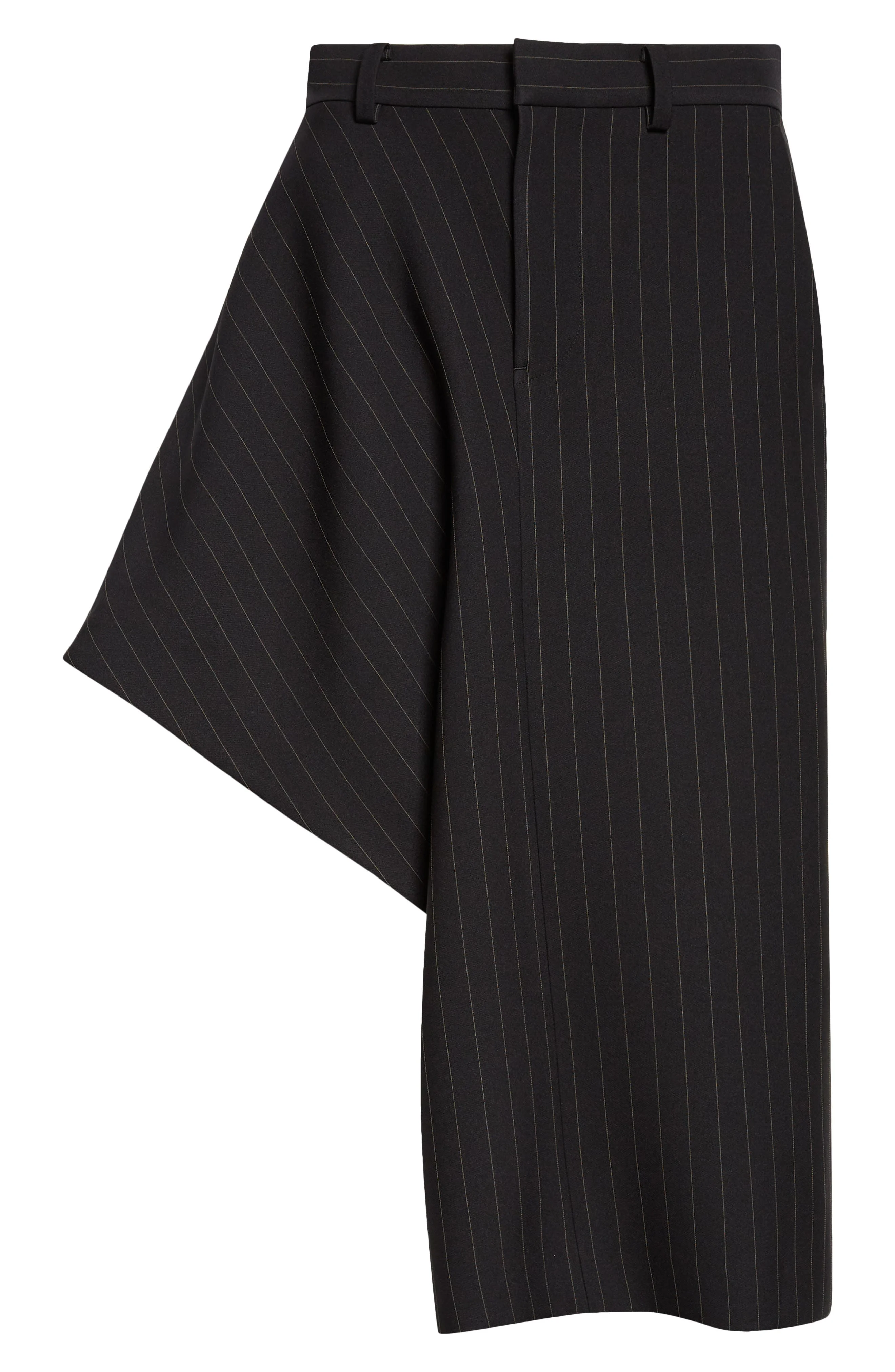 Pin-thin stripes bring a tailored aesthetic to this avant-garde skirt from the spring '26 collection cut with a squared-off panel that collapses downward at one side. Zip fly with hook-and-bar closure Front slant pockets 99% polyester, 1% rayon Dry clean Made in Japan Designer Clothing Asian & Pacific Islander Owned/Founded