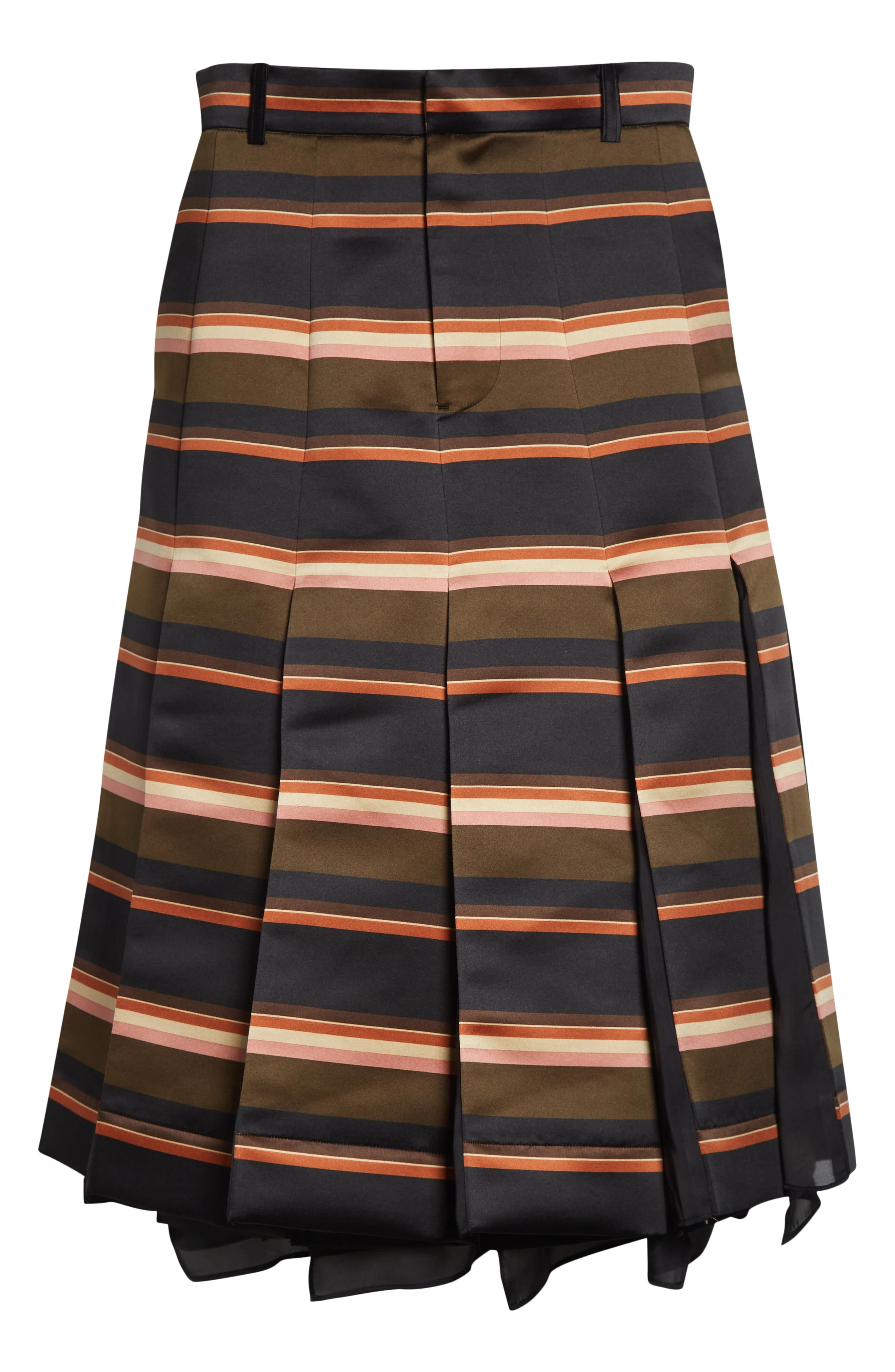Sacai Pleated Horizontal Stripe Skirt in Khaki/Pink at Nordstrom