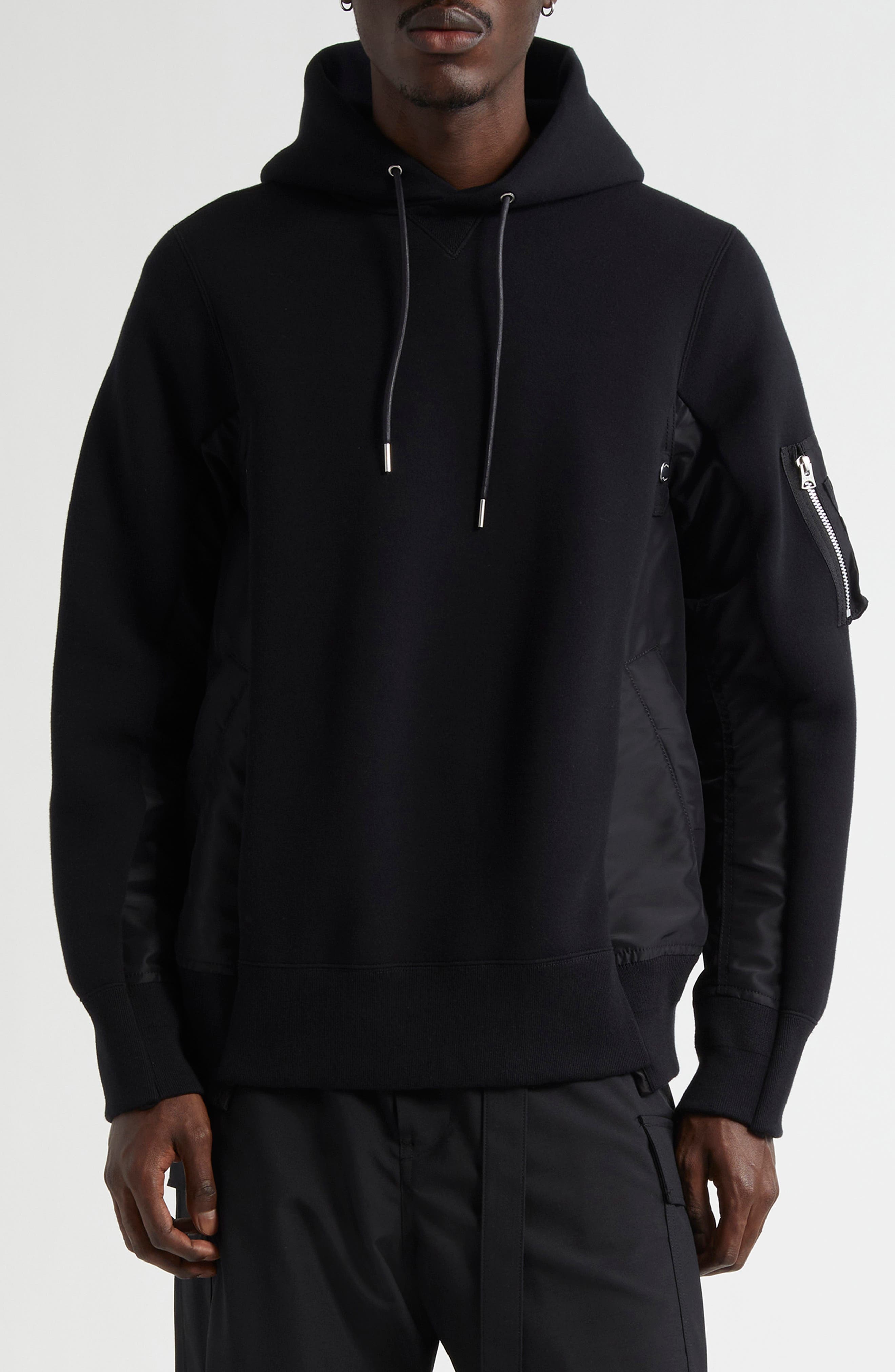 Sacai Sponge Sweat Mixed Media Hoodie in Black/Black 002 at Nordstrom