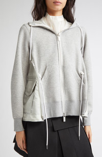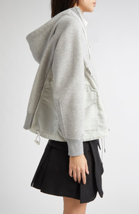 Sacai Sponge Sweat x Nylon Twill Hoodie in Light Gray/Light Gray 381 at Nordstrom