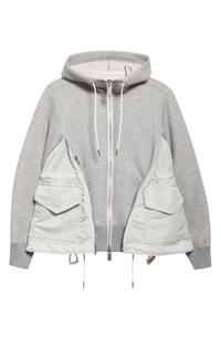 This sweat-wicking hoodie features signature splicing with nylon insets that zip up to deliver a versatile, customizable silhouette. Two-way front-zip closure Drawstring hood Front flap pockets; split kangaroo pocket Drawcord-toggle waist Unlined 62% cotton, 38% polyester; 100% nylon contrast Dry clean Made in Japan Designer Clothing Asian & Pacific Islander Owned/Founded