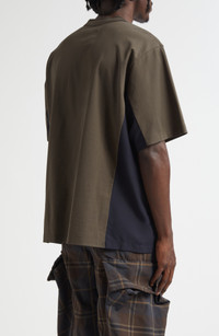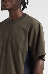 Sacai Suiting Mixed Media Pocket T-Shirt in Khaki/Navy at Nordstrom