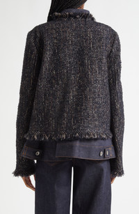 Sacai Tweed & Denim Layered Jacket in Navy/Indigo at Nordstrom