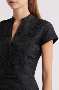 Tonal blooms texture a party-perfect dress cut to a beloved midi length and perfected with a pair of discreet pockets. 48" length Hidden-button placket Split neck Short sleeves Side-seam pockets Lined 93% polyester, 7% elastane Dry clean Imported