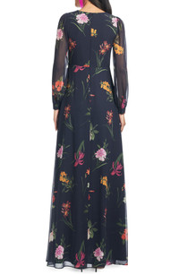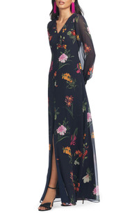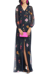 Sachin & Babi Penny Long Sleeve Gown in Dark Midnight Bouquet at Nordstrom