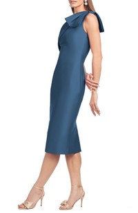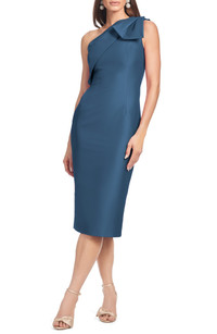 Sachin & Babi Sharla Bow Detail One-Shoulder Cocktail Sheath Midi Dress in Steel Blue at Nordstrom