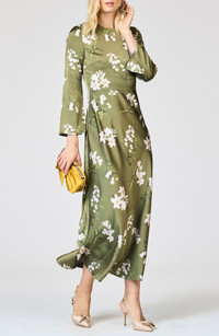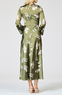 Sachin & Babi Tyra Floral Long Sleeve Satin Midi Dress in Moss Formosa at Nordstrom