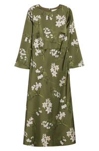 An exclusive floral print of white lilies blooms across this quietly sophisticated maxi dress cut from smooth satin crepe in an elegant A-line silhouette. 52" length Back zip closure Jewel neck Long sleeves Partially lined 100% polyester Dry clean Imported Asian & Pacific Islander Owned/Founded