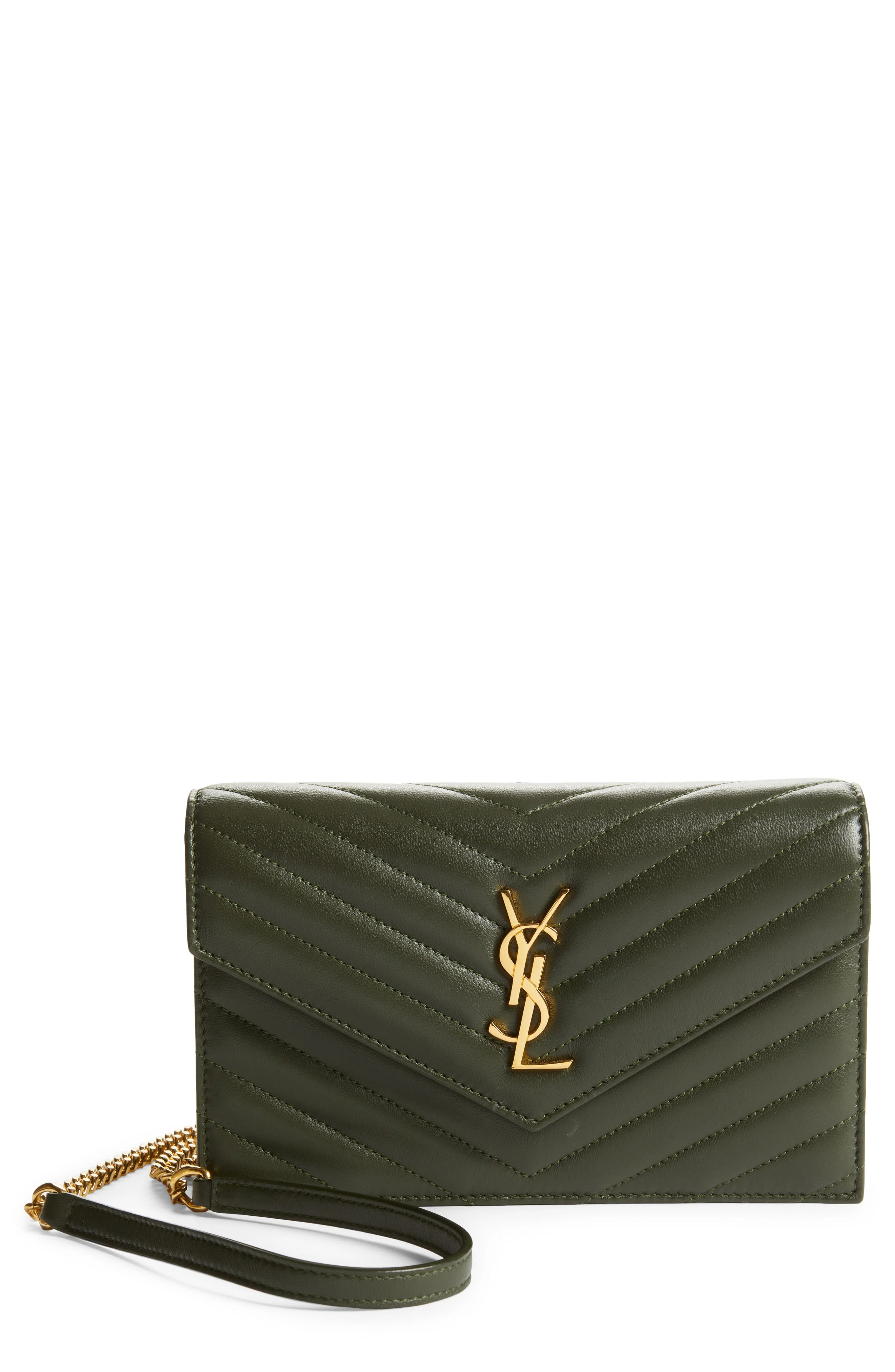 Saint Laurent Cassandre Quilted Leather Wallet on a Chain in Olive Wood at Nordstrom