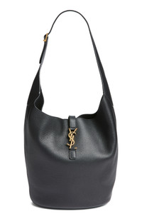 Done in a bucket-inspired silhouette from grained calfskin leather and branded with YSL insignia, this aptly named hobo is perfect for all your desk-to-dinner—and beyond—social activities. A tethered zip pouch keeps small items organized within the spacious interior. Hook-tab closure Adjustable shoulder strap Tethered zip pouch Leather Made in Italy Designer Handbags