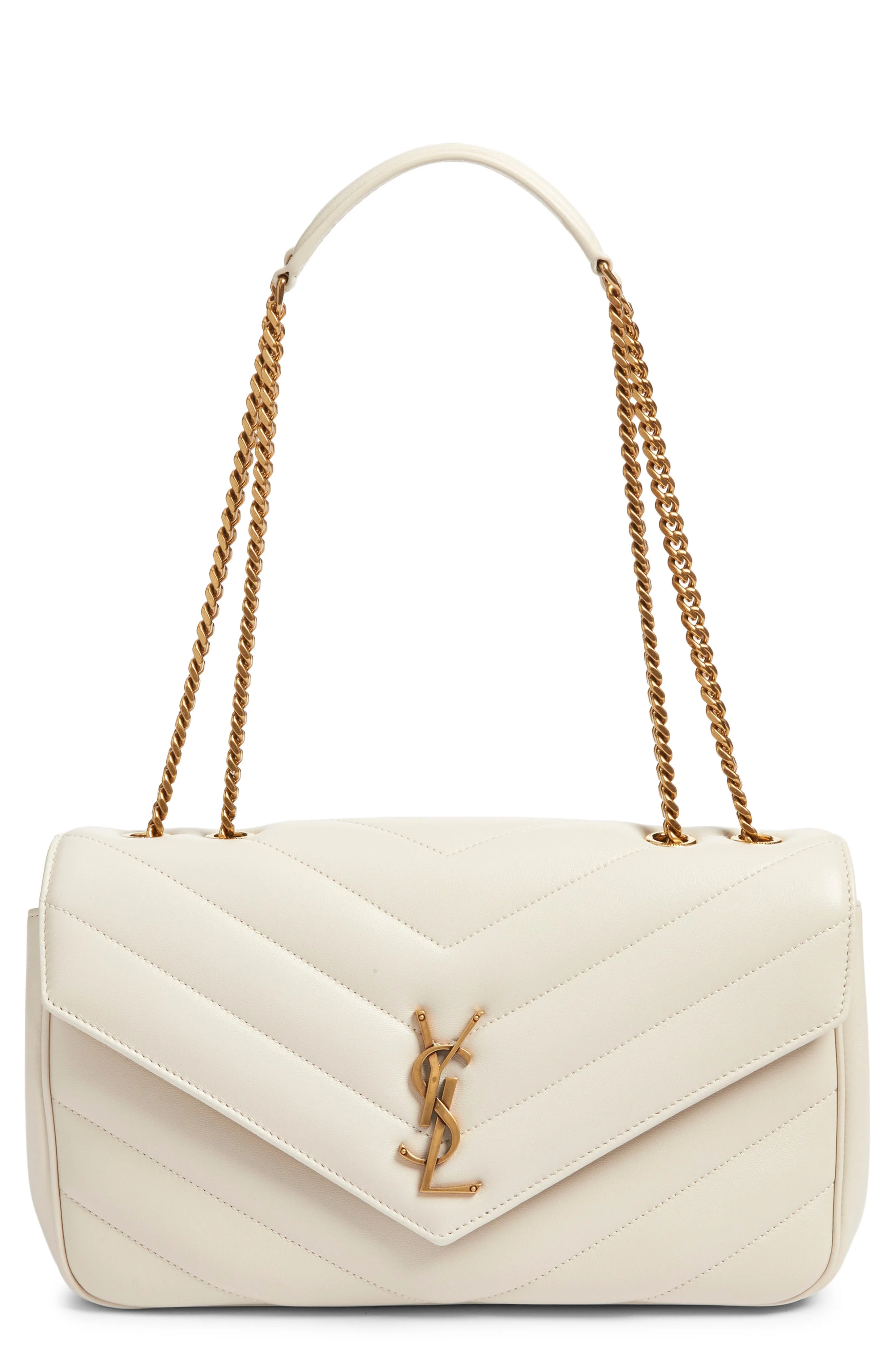 Saint Laurent Medium Loulou Quilted Leather Shoulder Bag in Blanc Vintage at Nordstrom