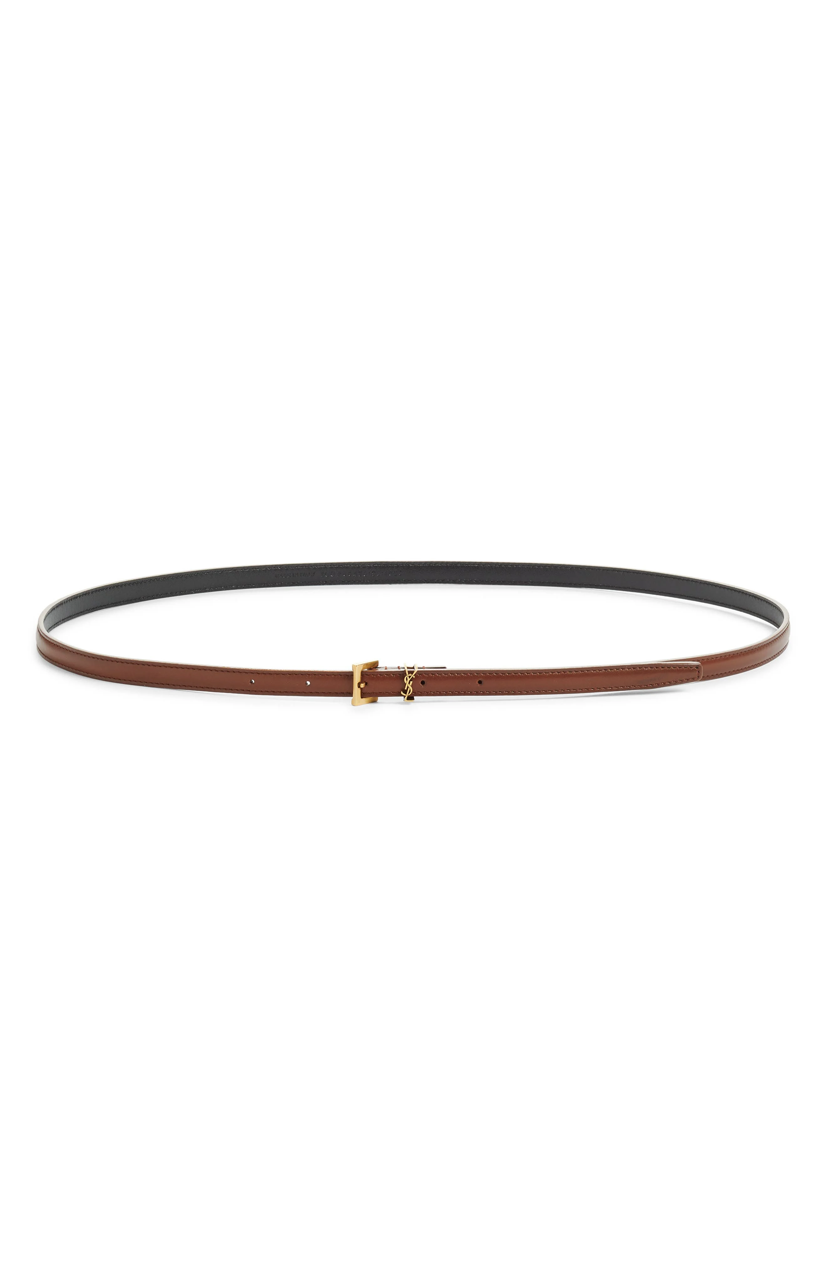 Saint Laurent Monogram Keeper Leather Skinny Belt in Ginger Bread at Nordstrom