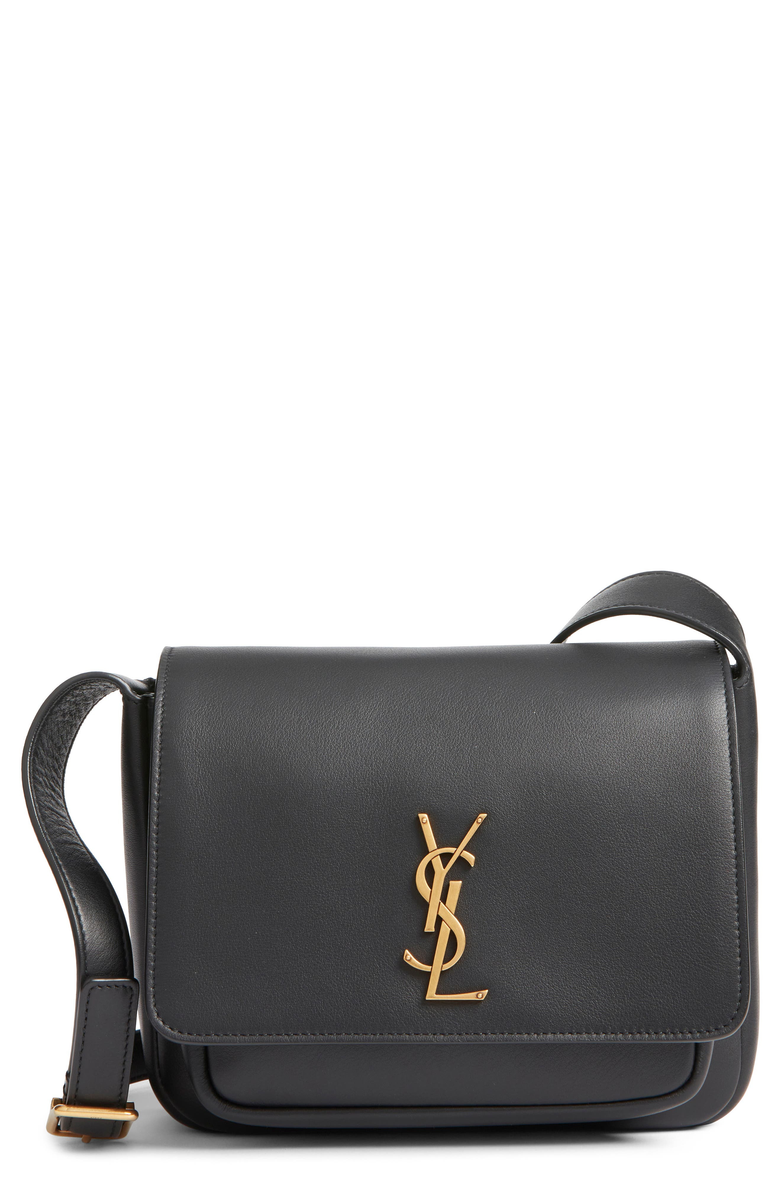 A gleaming YSL insignia shines at the front flap of this signature crossbody bag crafted from supple Italian suede and topped with an adjustable strap to offer a customized carry. 7" x 8 1/2" x 2" Magnetic-snap flap closure Adjustable shoulder strap Leather Made in Italy Designer Handbags