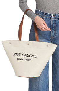 rive gauche tote bag in canvas and vintage leather