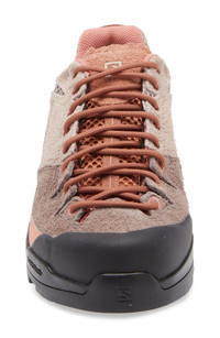 Conquer any terrain in comfort wearing this suede sneaker that treks back to Salomon's mountaineering roots. Hiking boot-style laces and a rubber-fronted toe box add both an alpine look and trail functionality to this sneaker built on the brand's patented 3D Edging Chassis that increases lateral stability without impeding forefoot mobility. Trail: provides superior stability and traction on hills, uneven surfaces and changing terrain Lace-up style Leather and textile upper/textile lining/rubber sole Imported Designer Shoes