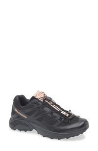 Brought back from the archives, this performance trail-running shoe combines a history of strength, stability and protection with unexpectedly delicate bows and frills.Perfect for: Trail running.Upper: It sports a one-pull Quicklace upper for a dynamic, locked-in fit, with mudguards and aggressive lugs conquering rocks, debris and changing surfaces with every stride.Midsole Drop: 11mm, the most common and generally considered to be the ideal standard for running shoes. Classified as a high-drop measurement, it allows for more cushioning to absorb the impact of heel strikes.Lower: Contagrip® TA tread puts sharp lugs and durable traction underfoot on wet, dry, solid and loose surfaces. Salomon's performance-tech construction takes you easily from concrete jungles to rocky pathways to everyday adventures—whether you're running or walking. Trail: provides superior stability and traction on hills, uneven surfaces and changing terrain Quicklace™ closure offers one-pull tightening Water resistant SensiFit™ construction cradles your foot from the laces to sole for secure, customized comfort Removable OrthoLite® insole allows for custom orthotics Textile and synthetic upper/textile lining/synthetic sole Imported