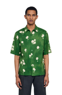 Lightweight linen shirt with floral print, featuring a classic collar, button fastening and short sleeves. Sandro Men's floral print shirt Flowing fit Classic collar Short sleeves Button fastening 63% linen The model is 6'1 tall and wears a size M