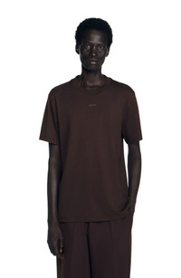 Short-sleeved, round-neck cotton T-shirt with rubberized SANDRO logo. Sandro Men's cotton T-shirt Round neck Short sleeves SANDRO rubber logo The model is 6'1 tall and wears a size M