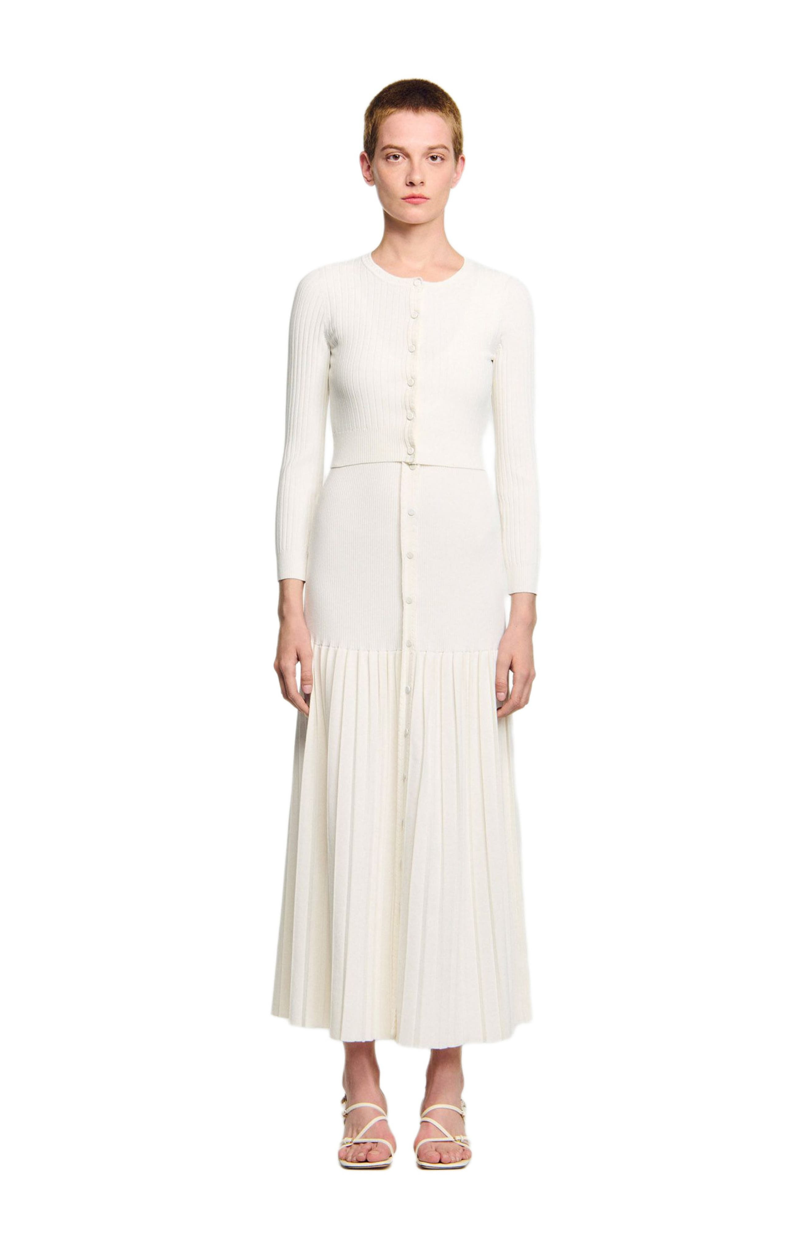 Short fine knit cardigan with a round neck, long sleeves and a button fastening at the front. Sandro Women's short cardigan Round neck Long sleeves Button fastening at the front The model is 5'9 tall and wears a size small