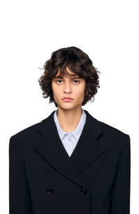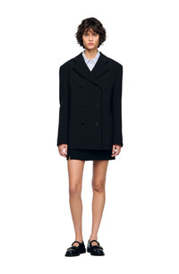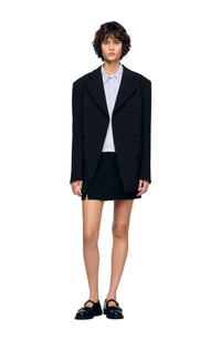 Double-breasted suit jacket with a tailored collar, long sleeves and double welt pockets. Sandro Women's suit jacket Double-breasted Tailored collar Buttoned sleeve vents The model is 5'9 tall and wears a size 4