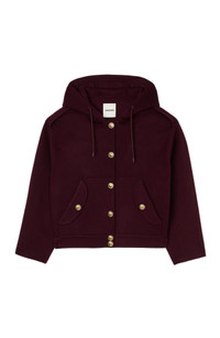 Double-faced wool jacket with drawstring hood, long sleeves with button cuffs, gold buttons, side pockets and shoulder plackets. This jacket matches the skirt Women's Sandro double-faced jacket-style coat Drawstring hood Long sleeves with button cuffs Gold button fastening 2 pockets with curved flaps on chest and button fastening 2 welt side pockets Shoulder plackets The model is 5'9 tall and wears a size 4