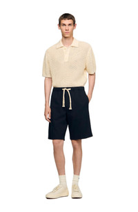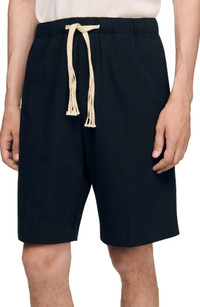Cotton shorts with elasticated waistband, braided drawstring, side pockets and patch pockets on the back. Sandro Men's cotton shorts Elasticated waist Braided drawstring 2 side pockets 2 patch pockets on back The model is 6'1 tall and wears a size 38