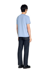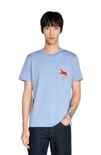 Cotton T-shirt with a round neck and short sleeves, embellished with a horse embroidery on the chest. Sandro Men's 100% cotton T-shirt Classic fit Round neck Short sleeves Horse embroidery on the chest 100% cotton The model is 5'8 tall and wears a size S