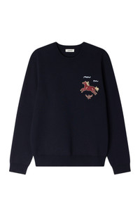 Plain knit sweatshirt with a round neck and long sleeves, featuring a horse embroidery on the chest. Sandro Men's knit sweatshirt Classic fit Horse embroidery on the chest Round neck Long sleeves The model is 5'8 tall and wears a size S