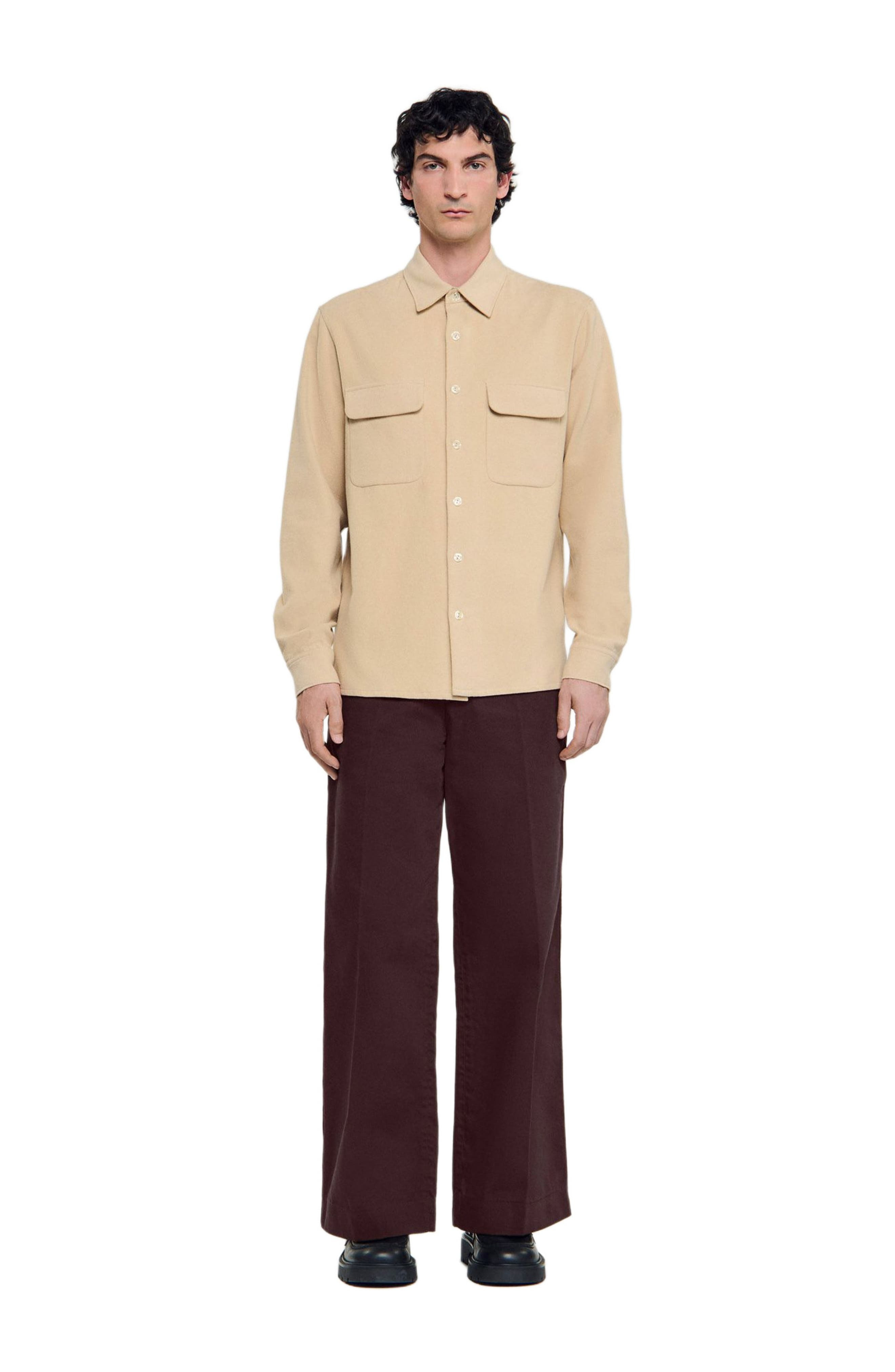 Flannel shirt with wing collar, long sleeves, button fastening and chest flap pockets. Sandro Men's flannel shirt Wing collar Loose fit Long sleeves Button fastening Chest flap pockets The model is 6'1 tall and wears a size M