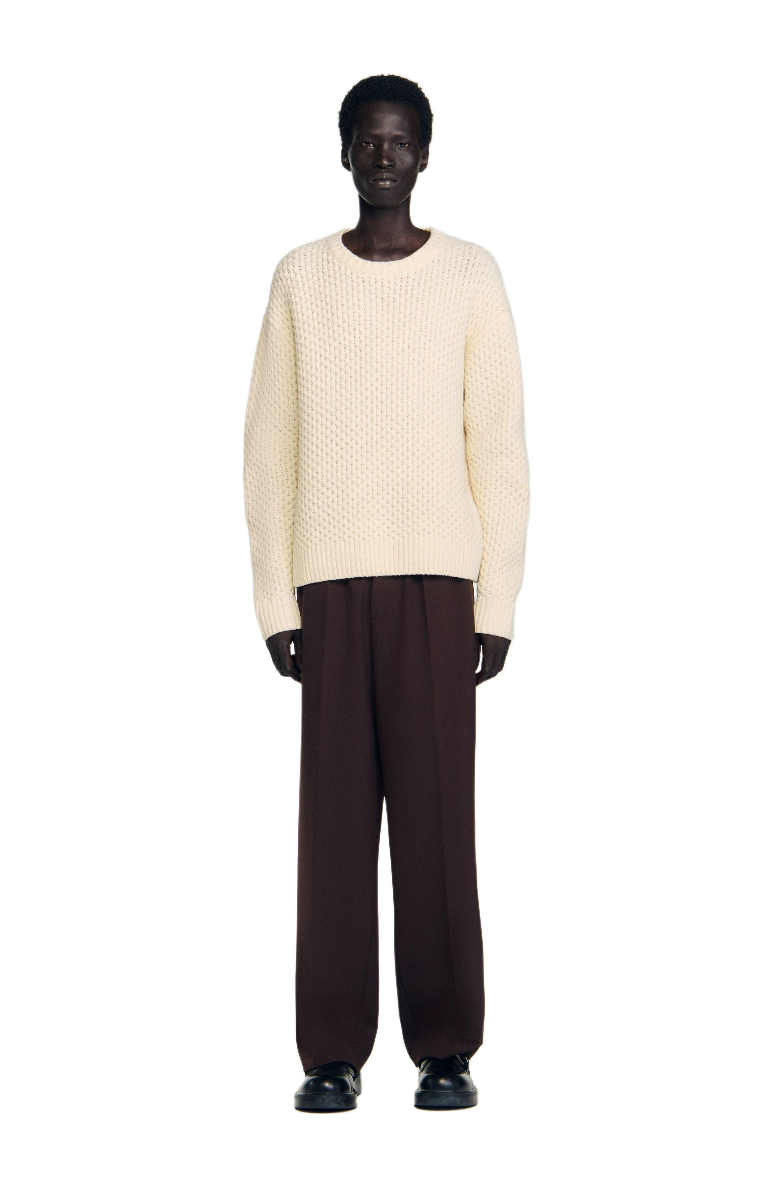 SANDRO Honeycomb stitch wool sweater in Off White at Nordstrom