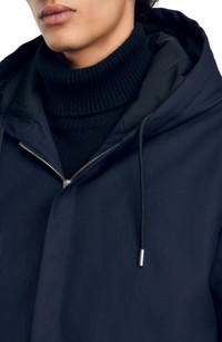 SANDRO Hooded parka with zip in Navy Blue at Nordstrom