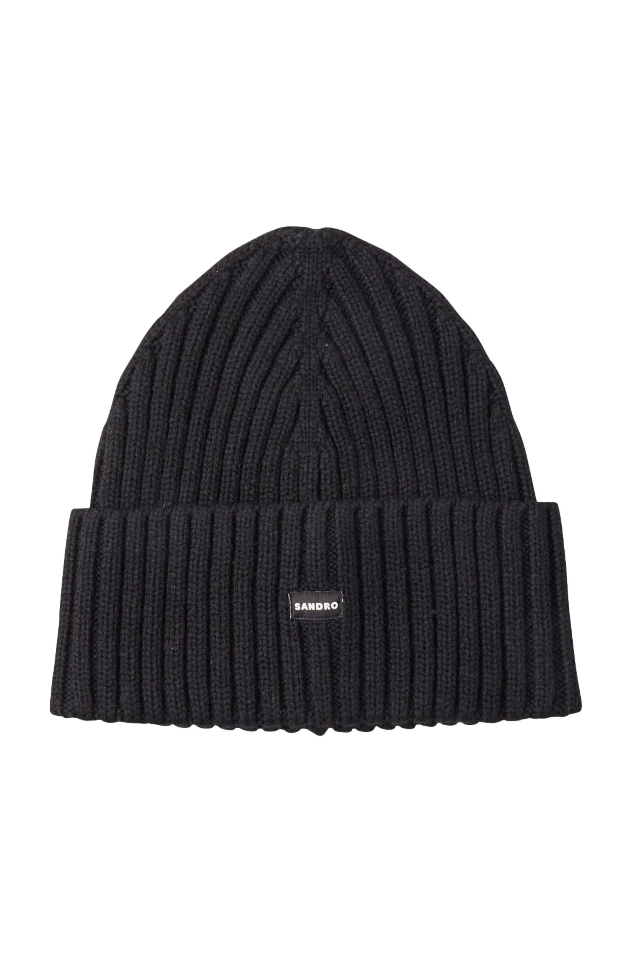 Rib knit hat with a SANDRO tag sewn onto the front. The wool in this model comes from extensive farms that respect animal welfare and help to preserve local biodiversity. Sandro Men's knit hat Rib knit SANDRO tag
