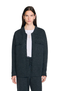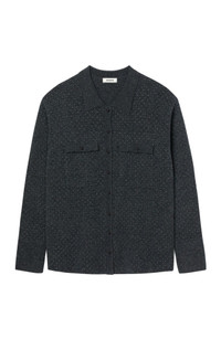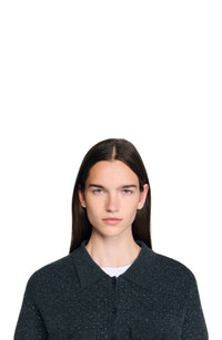 Long shirt-style cardigan with strass, featuring a shirt collar, long sleeves and a button placket fastening. Sandro Women's long cardigan Shirt collar Long sleeves Button placket fastening Buttoned patch pockets on chest The model is 5'9 tall and wears a size small