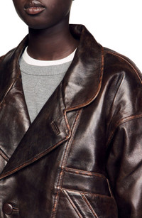 SANDRO Oversized leather jacket in Brown at Nordstrom
