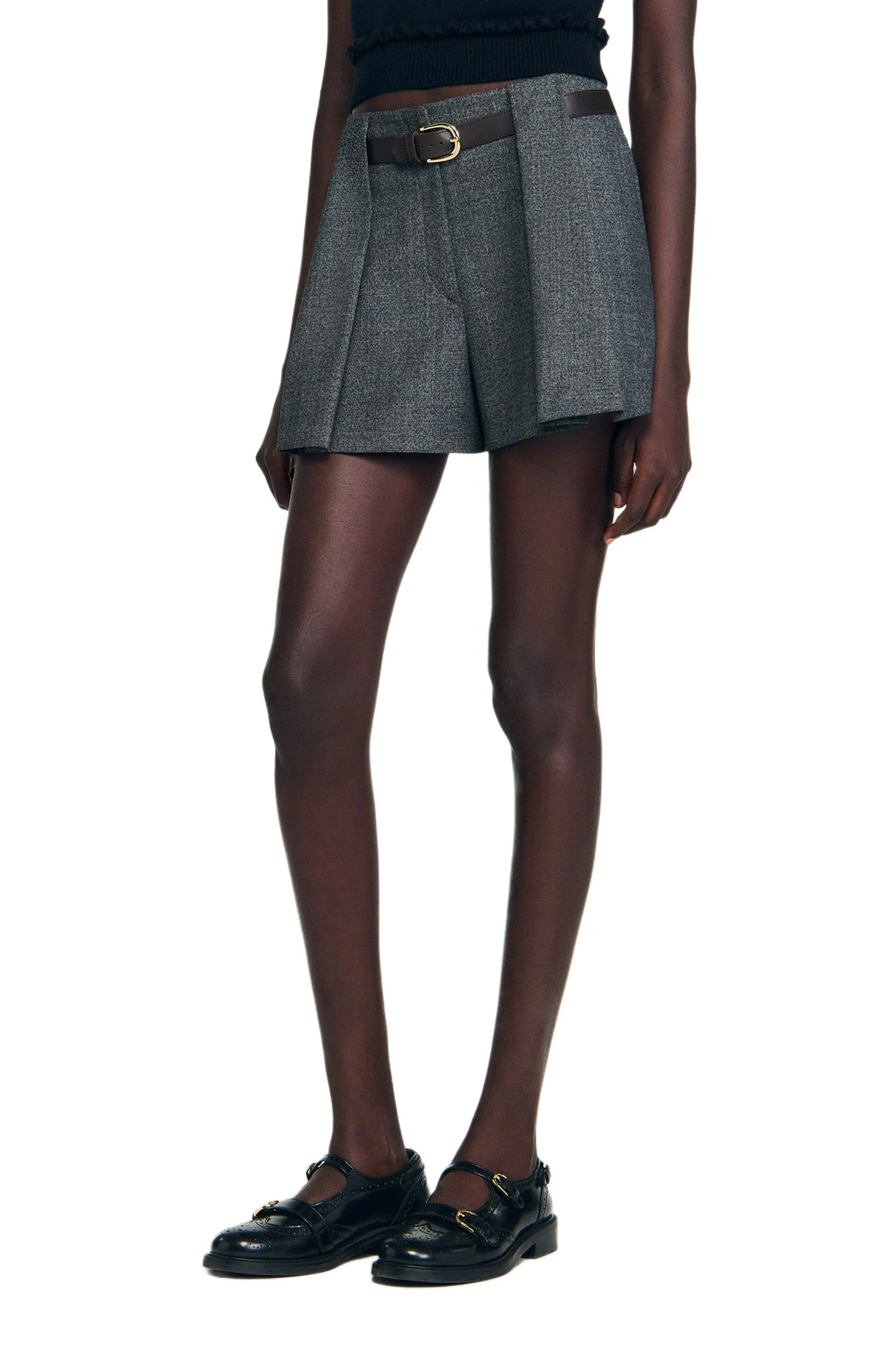 Short pleated hotpants with a suede belt at the waist. Sandro Women's hotpants Removable suede belt Zip fastening Side seam pockets Welt pockets on back The model is 5'9 tall and wears a size 4