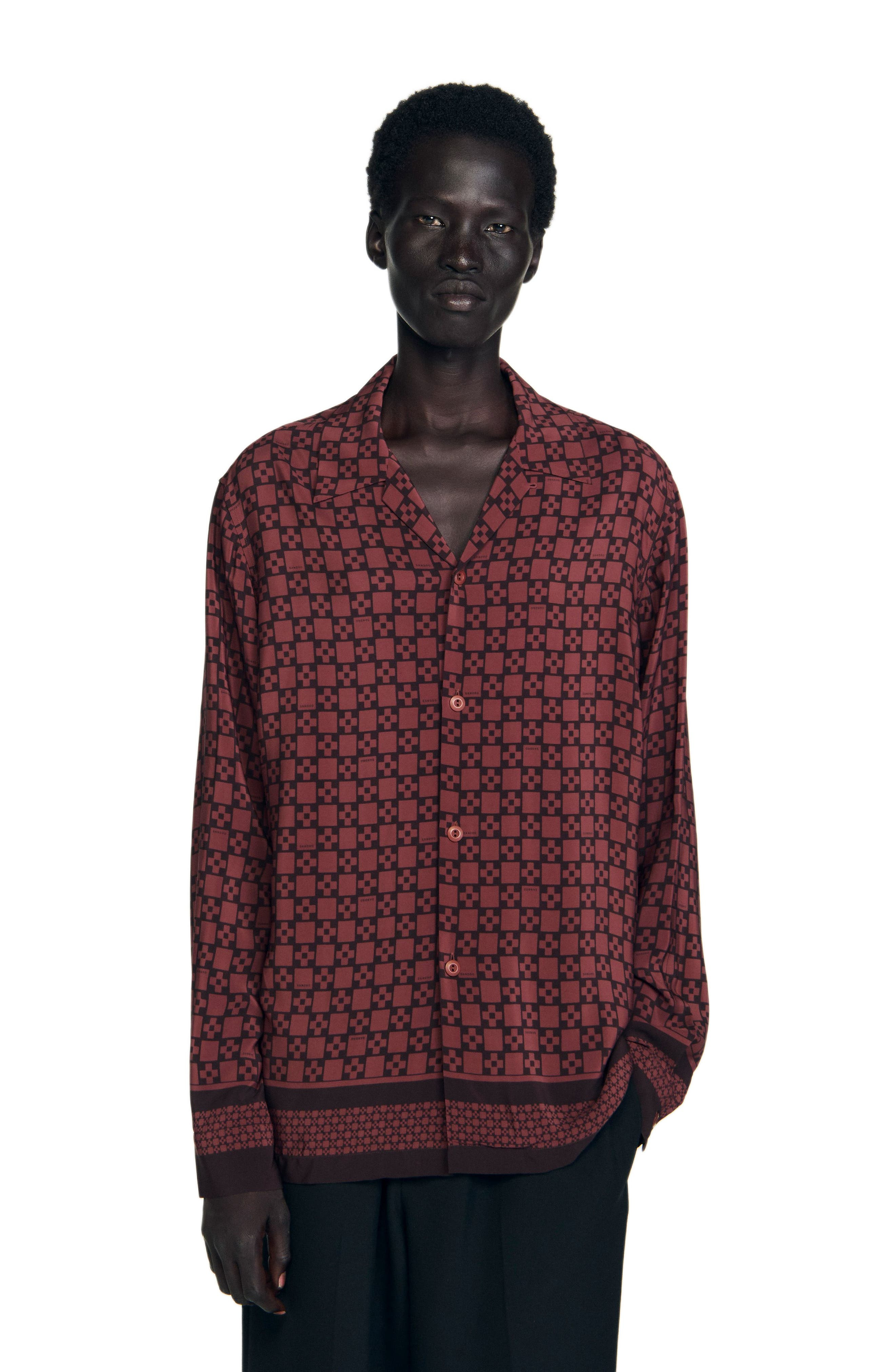 Flowing printed shirt with shirt collar and button fastening at the front. Sandro Men's monogram printed shirt Shirt collar Long sleeves Button fastening at the front Monogram motif The model is 5'8 tall and wears a size S