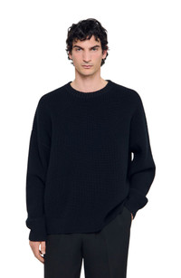 Oversized sweater in thick ribbed knit with round neck, long sleeves and ribbed trim. Sandro Men's oversized jumper Oversized fit Wool and cashmere Round neck Raglan sleeves Long sleeves The model is 6'1 tall and wears a size M