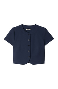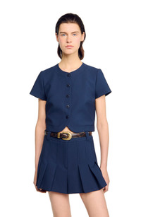 SANDRO Rounded hem buttoned crop top in Navy Blue at Nordstrom