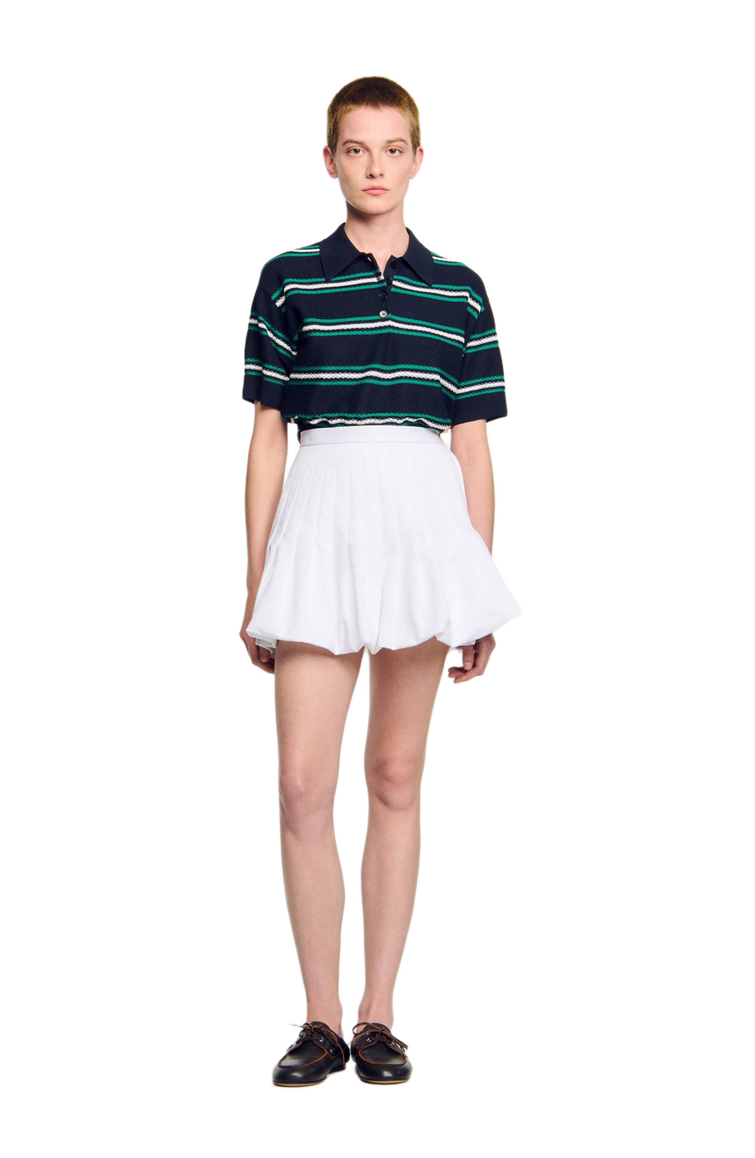 Short bubble pleated skirt with a zip and button fastening on the side. Sandro Women's short bubble pleated skirt Flared cut Side zip fastening The model is 5'9 tall and wears a size 36