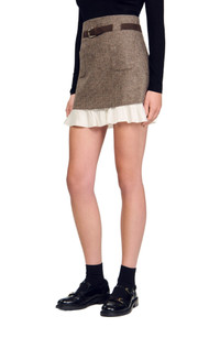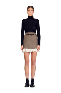 Short checked skirt with a longer contrasting ruffled lining and a removable belt at the waist. Sandro Women's short checked skirt Removable belt Longer contrasting ruffled hem High waist Straight cut The model is 5'9 tall and wears a size 4