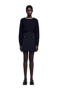 Sandro women's skirt Short skirt with stitched pleats Large trompe l'oeil piped pockets with fancy buckle created by our studio Mid-thigh length Fastened with a concealed zip at the centre back The model is 5'8 tall and wears a size 4
