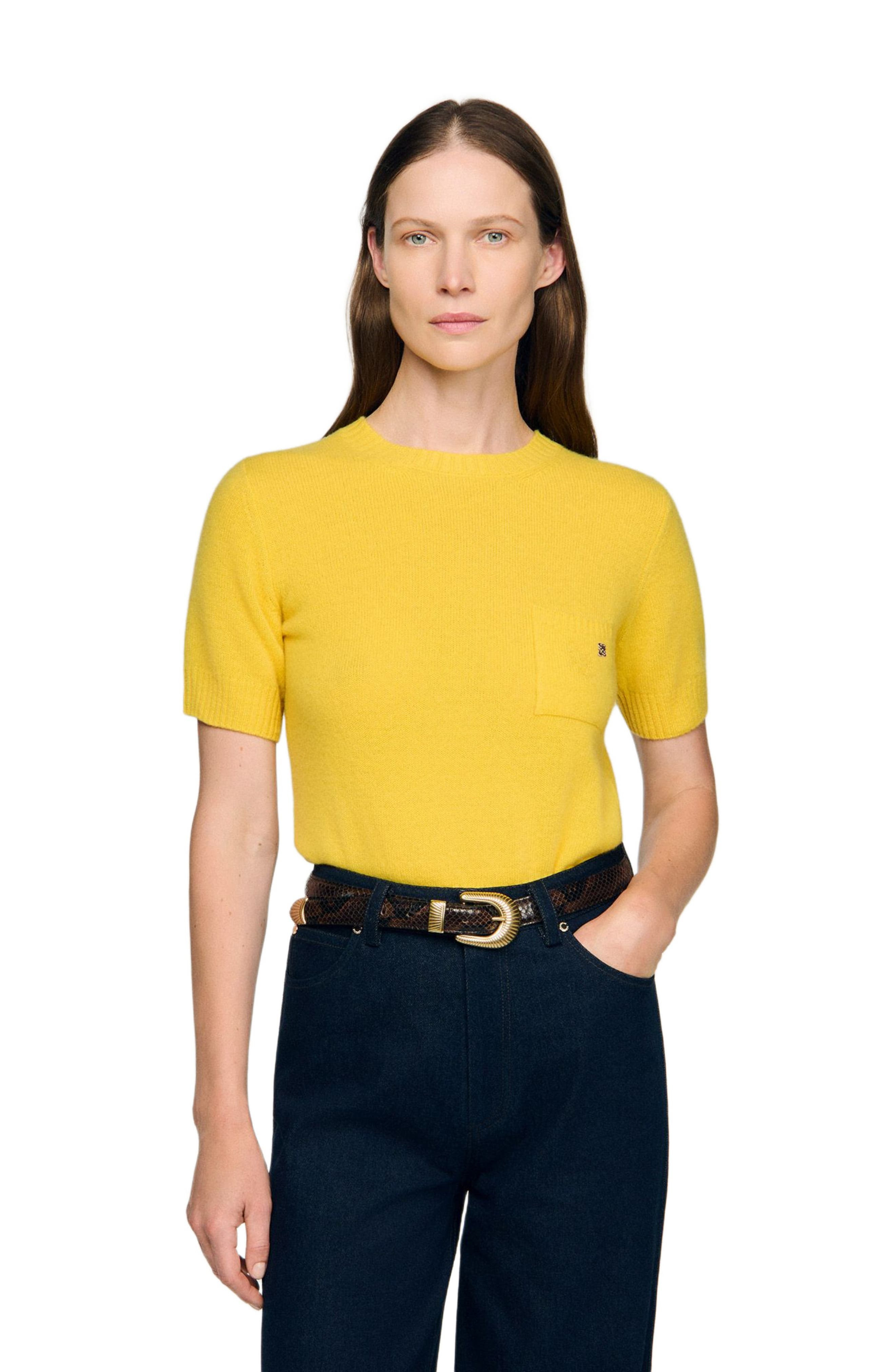 SANDRO Short-sleeve sweater in Gold Yellow at Nordstrom