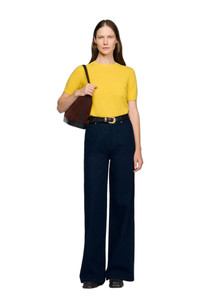 Fine knit short-sleeved sweater with small braid details and a chest patch pocket adorned with a signature tag. Sandro Women's fine knit jumper Round neck Short sleeves Chest patch pocket Signature tag Ribbed trim The model is 5'9 tall and wears a size small