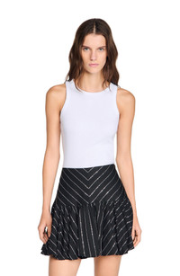 Short striped bubble skirt embellished with sequins and a zip fastening. Sandro Women's bubble skirt Striped pattern Decorative sequins Cut-outs at the hips Zip fastening on the side 100% cotton lining The model is 5'8 tall and wears a size 4