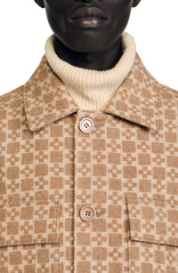 Square Cross jacquard overshirt with long sleeves, classic collar, button fastening and patch pockets with flaps. Sandro Men's Square Cross jacquard overshirt Classic collar Long sleeves Buttoned cuffs Button fastening Patch pockets with flaps The model is 6'2 tall and wears a size M