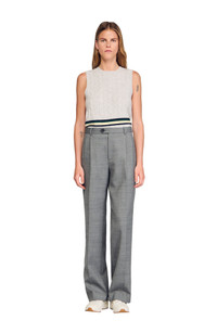 Straight-leg, wide-leg trousers with pleat details at the waist and ironed creases down the legs. Sandro Women's wool trousers Ironed creases down the legs Slanting pockets Buttoned welt pockets on back Belt loops The model is 5'9 tall and wears a size 4