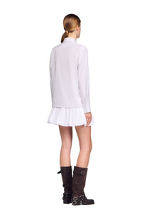 Striped shirt with a detachable tie collar, long sleeves with buttoned cuffs, and a button fastening. Sandro Women's striped cotton shirt Long sleeves with buttoned cuffs Detachable tie collar Button fastening The model is 5'9 tall and wears a size small
